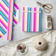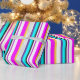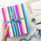 Cool, modern and trendy pink, yellow, turquoise, white, black, violet, lavender and lapis stripes in varying sizes form a bold and eye-catching pattern to this gift wrap. IDEAL FOR - Gifts for engagement, wedding, anniversary, bridal shower and birthday celebrations.