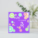 Colourful bubbles against violet background .Cheerful invitation card for kids' occasions /announcements .You can change all the text both sides .This way it is suitable for any age or party /annoucements .Custom invitation template by Alma Wad . See matching stamp :
