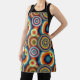 This apron has a Bauhaus design of different groups of concentric circles in 1970s colours.