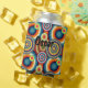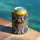This can cooler has a Bauhaus design of different groups of concentric circles in 1970s colours.