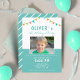 Colourful Bunting Flags Blue Photo Birthday Party Invitation. Cute and fun birthday invitation for a boy or a girl. The design has colourful bunting flags. Personalise all the text on the invitation and insert your photo into the template. This joyful design can be used for various ages.
