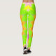 This leggings design features a colourful bursting pattern featuring vibrant shades of colours like green and pinkish purple.