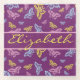 Butterflies in bright yellow, pink, and blue on a dark deep purple background. With a monogram banner to personalise and add any name.