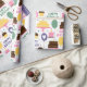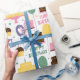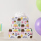 Add a custom touch to your child's birthday party with this adorable personalised wrapping paper. Gift wrap has a pattern of colourful cakes with candles and balloons. Add two custom messages, such as happy birthday and your little one's name and age.