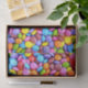 A lot of different Colour varied sugar-coated chocolate. Yellow, pink, red, blue, green, purple and brown. Change MB to your own initials, into a monogram or enter any name you choose.