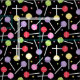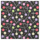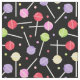 Colourful candy themed fabric patterned with sweet lollipops on a black background colour