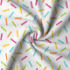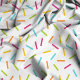 Add a burst of colour to your projects with this vibrant candy sprinkles pattern! Featuring a playful array of rainbow-coloured sprinkles scattered across a crisp white background, this design is perfect for adding a fun, whimsical touch to any creation. Ideal for children's apparel, party decor, or festive crafting projects, this fabric brings joy and creativity to life. The lively colours and dynamic pattern make it a must-have for anyone looking to add a little extra cheer to their designs.