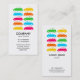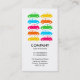 A clear stylish and attractive business card template with a motif made up of ten car symbols in five different alternating colours and travelling in alternating directions. Main company details on the front, with name and personal contact details on the back, with the same motif and style.