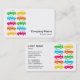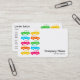 A business/profile card template with a motif made up of ten car symbols in five different alternating colours and travelling in alternating directions.. Company name and business type on the front balanced with the motif on the left. Name an all other contact on the reverse with the motif on the right. Ready to be customised with your details. Could be suitable for a taxi firm, driving school or any car or traffic related business.