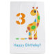 Cheerful illustration of a cute cartoon giraffe with multicolour spots. Customisable age and message.