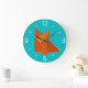 Customisable colourful wall clock with an illustration of a cute cartoon origami fox over blue background. This cute clock would look great in a children's room.