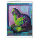 Original painting of a colourful, psychedelic cat sitting in a window on various clothing and other items