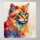 Colourful Cat Silhouette Watercolor Wall Poster