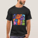 I give wanted to give this a 4 instead of a 5 because these Basic DARK T0shirts run unexpectedly SLIM or Narrow. Which is great if you do not have a potbelly, but I have a paunch. It isn't the shirt's fault that I've got a beer belly. The design and shirt itself is a quality cotton shirt. The color is more of a deep purple, but still a very pretty color. The Basic DARK T-shirts run a bit SLIMMER than the Basic Ts. The neck is a fraction narrower (or seems to be narrower) also. I'm a paunchy middle-aged woman and my neck is 12 inches (31cm) thick and the neckline fell about the same as in the photo of the man, and I had the desire to tug it a bit. So if you're a thick necked man or like loose shirts, be aware these are slimmer shirts. Once I get rid of my lockdown paunch it'll look great. The shirt washed well in cold water with no apparent bleeding. We don't have a dryer, so it hung dry. Did not shrink. Love the colors and the design. The design looks smaller on my shirt than it does on the model on-line. But still, it looks good on the shirt. The printing looks as it does on the model, just the size seems fractionally smaller. Washed garment in cold water, hung dry and design appeared unaffected.