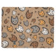 A colourful pattern - orange, grey, black, brown, white - of cats and paw prints against a burlap background. Perfect for the animal-lover!
