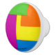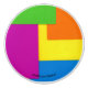 Colourful abstract design of orange, yellow, blue, magenta, green.