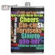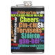 Colourful Cheers Toast in Many Languages Word Clou Hip Flask