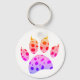 Cartoon style cheetah paw print. Colourful version in pink, orange and purple.