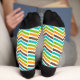 Chevron stripe socks with stripes of blue, green, white, orange, and brown.