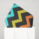 Colourful Summer Fun Chevron made from coloured lines in pink, purple, cyan, green, blue, orange yellow, turquoise on dark grey.
