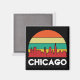 Unique and trendy Chicago Vintage Cityscape magnet showing the skyline of the american city with all famous towers and landmarks in Illinois and a vintage sunset. Great gift idea and souvenir.