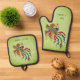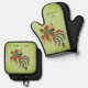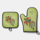 Colourful Chinese Rooster Art Personalised Oven Mitt & Pot Holder Set