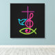 Colourful Christian Cross with Music Note & Fish Canvas Print