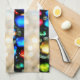 Colourful Christmas Balls And White Lights Stripes Tea Towel