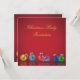 Precious Christmas illustration featuring Christmas tree baubles in different colours on a red background.