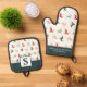 Colourful Christmas Reindeer Monogrammed Oven Mitt & Pot Holder Set