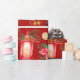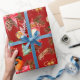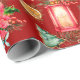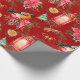 Colourful Christmas symbols pattern Red Background Wrapping Paper