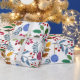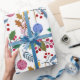 Christmas symbols in a seamless pattern with a white background. Colourful ornaments and green holly.