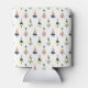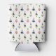 Simple geometric seamless pattern in Scandinavian style with colourful (pink, yellow, grey, navy blue) Christmas tree decoration on white background
