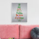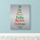 Christmas Tree Words Canvas Prints with colourful font and words Joy, Love,Peace, Faith, Believe, Christmas in the shape of a Christmas tree with a snowflake tree topper and vintage tree bottom with ornaments.