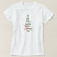 Christmas Tree Words T.shirts. Colourful, inspirational words Joy, Love,Peace, Faith, Believe, Christmas in the shape of a Christmas tree with a snowflake tree topper and vintage tree bottom with ornaments.
