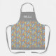 Colourful stylised Christmas trees pattern on grey all-over print apron. It features stylised trees in yellow, orange and aqua and white polka dots on grey background. On the upper and the bottom parts of the apron there are grey bands with scalloped edges. You can personalise it with your name.