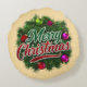 Colourful Christmas Wreath with Merry Greeting Round Cushion
