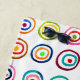 Colourful whimsical playful design of watercolor rainbow circles against a neutral background. This cute modern Scandinavian infuenced design is simple and modern.