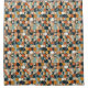 Circles and ovals in blue, teal, gold, black, rust, and brown combine to make an unusual and beautiful shower curtain. Modern, artistic, and stylish.