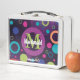 This vibrantly coloured LUNCHBOX features circles, rings, spots and dots in different sizes, thicknesses and colours, mainly mauve, lime green, cyan and pink, against a deep purple background. There is a placeholder monogram and name in the centre - each with a slight drop shadow. There is also a Scripture verse at the bottom. These are customisable, so you can add your name/text and monogram. This LUNCH BOX would be an ideal gift for birthdays, Christmas, Mother's Day, Father' Day, Back to School, University or College students, etc. Other matching items are available in the CIRCLES Collection, so you can create some awesome gift sets, eg. for your family, students and friends, etc.