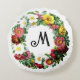 Colourful circlet of vintage roses - circle graphic image . You can customise both sides of this pillow with your own monogram .