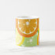 A colourful array of citrus fruits, including orange, lime, lemon and grapefruit on a mug.