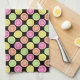 Bright slices of citrus fruits in a variety of fun colours make up this graphic pattern decorating this kitchen towel that is so refreshing for summertime. Yellow and pink lemons along with green limes and oranges are depicted in cross section in this simple and modern pattern.