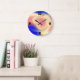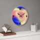 Wall clock with colourful background.