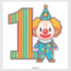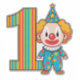 Vibrant clown character stands beside a large rainbow-striped number, perfect for children's birthday party visuals. Bright, playful colours convey joy and festive mood for family-friendly event themes.