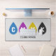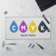 A light grey Desk Mat with colourful CMYK Ink Drops and "Colours Powers" as customisable text for office decoration, to make a gift to a graphic designer, to spruce up your desk at work or printing service business.