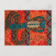 A colourful cobra in teal, brown and orange set against an orange and red floral background.