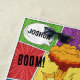 A colourful comic book pop art style design featuring your custom name. A cute and fun comic book themed illustration with bright colours and superhero action words and drawings. An ideal design for anyone who loves super hero designs, comics, cartoon style illustrations, colourful action filled designs and pop art! Personalise this funny comic book style design and make it your own!