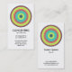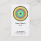 A stylish business card template with an attractive concentric circle roundel motif. Main company details on the front, with name and personal contact on the back.