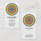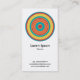 A stylish business card template with an attractive concentric circle roundel motif. Main company details on the front, with name and personal contact on the back.